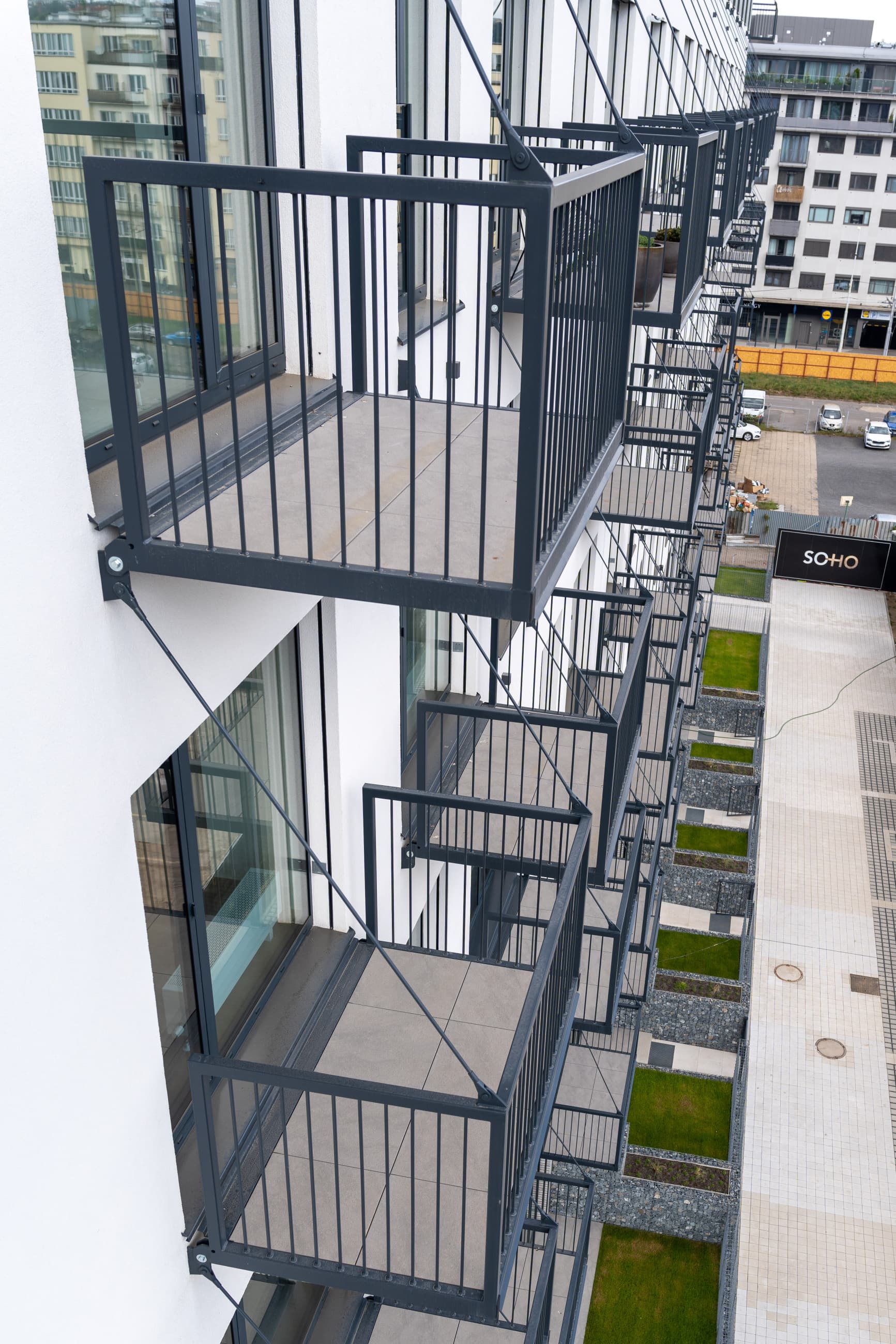 Díky předem připraveným kotevním bodům a dodávce balkonů s již nainstalovaným zábradlím až po dokončení fasády, zajišťujeme bleskově rychlou montáž, která šetří čas a snižuje náklady na stavbě.