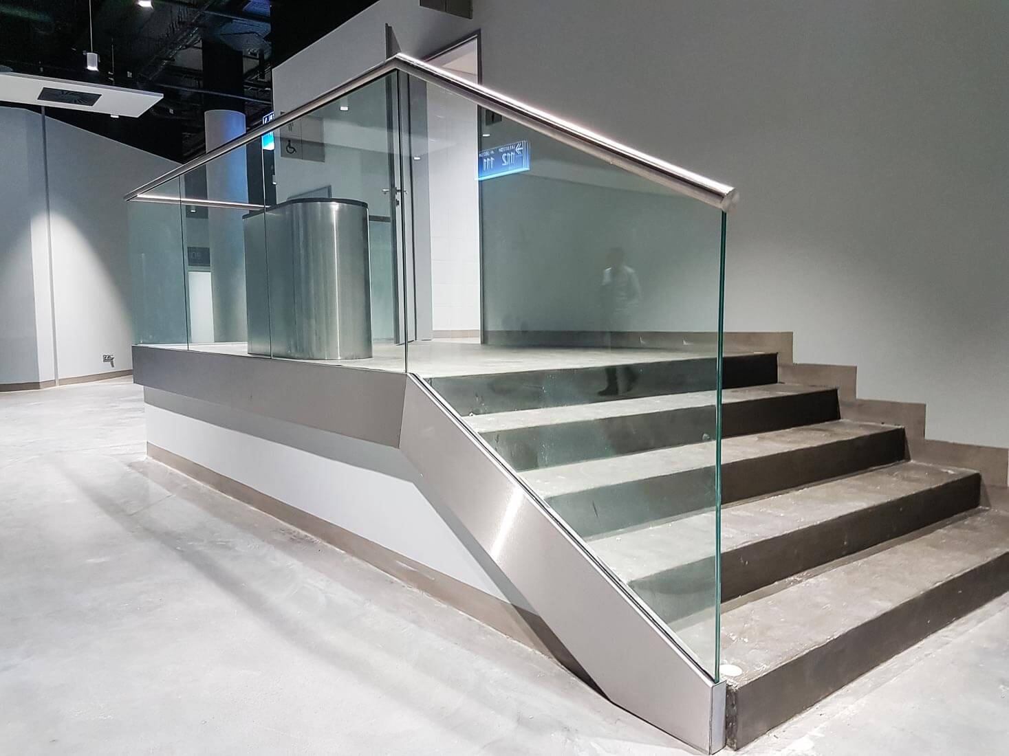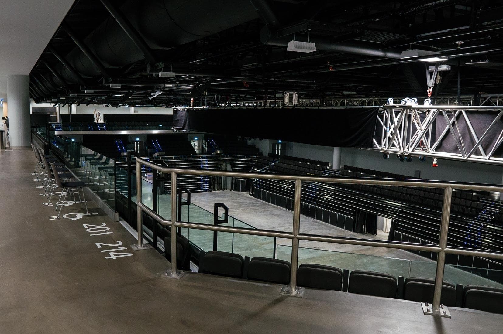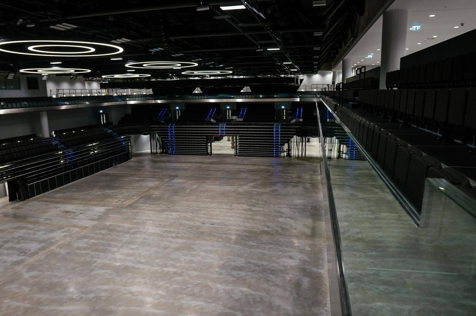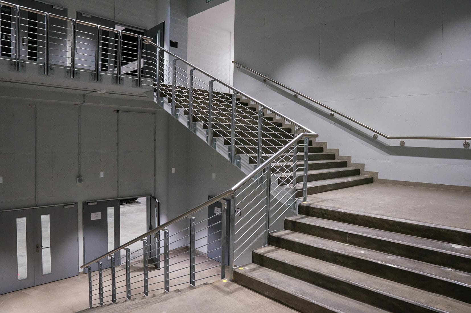 Für den Bau dieser Multifunktionsarena lieferten wir mehr als 330 m Glasgeländer für die Tribünen in Kombination mit einem Edelstahlband, 180 m Treppengeländer, Glasgeländer für Rolltreppen sowie weitere Schlosserelemente und Stahlkonstruktionen.