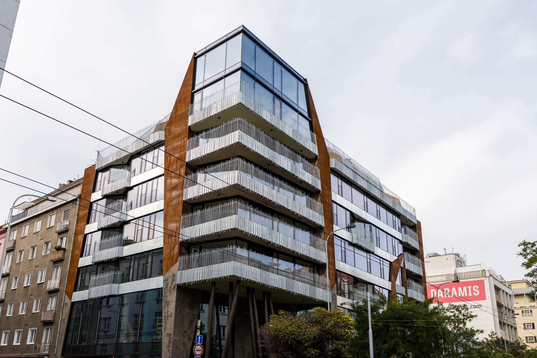 On the site of two apartment buildings that could not withstand the onslaught of the 2002 flood, Stanislav Fiala designed this unique house, which has been missing in Holešovice until now. The house offers 40 residential units and a two-storey ground floor with a showroom.
