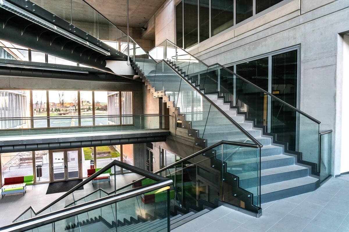 We supplied the staircase with footbridges, which forms the main architectural element of the atrium of the new building of the Faculty of Science of the University of South Bohemia.