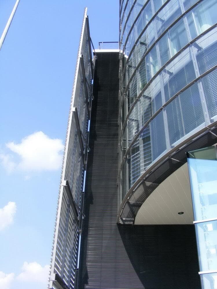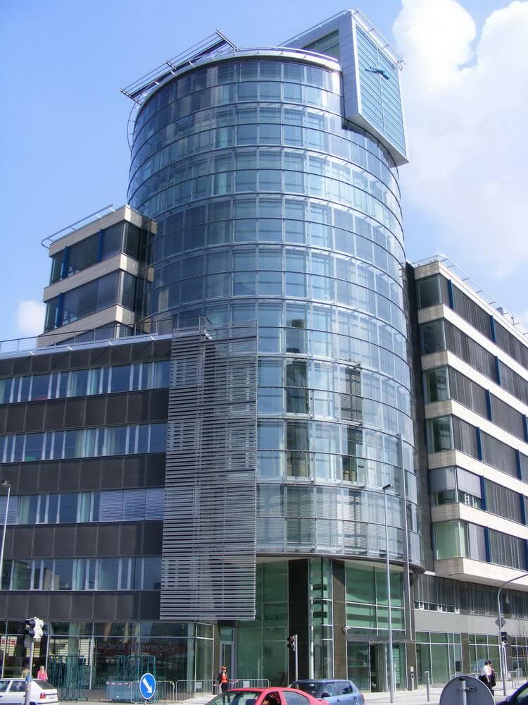 Administrativní budova Trianon na přažské Pankráci. Dodávali jsme ocelové konstrukce předvěšené fasády a střešní markýzy, konstrukce střešních zábradlí.