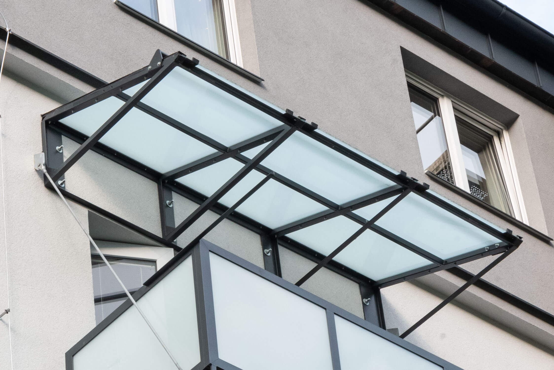 Estetický prvek těchto balkonů je zvýrazněn použitím kaleného bezpečnostního mléčného skla jako výplně zábradlí. Tato elegantní a zároveň bezpečná volba zdůrazňuje charakter domu a dodává mu nový architektonický nádech.