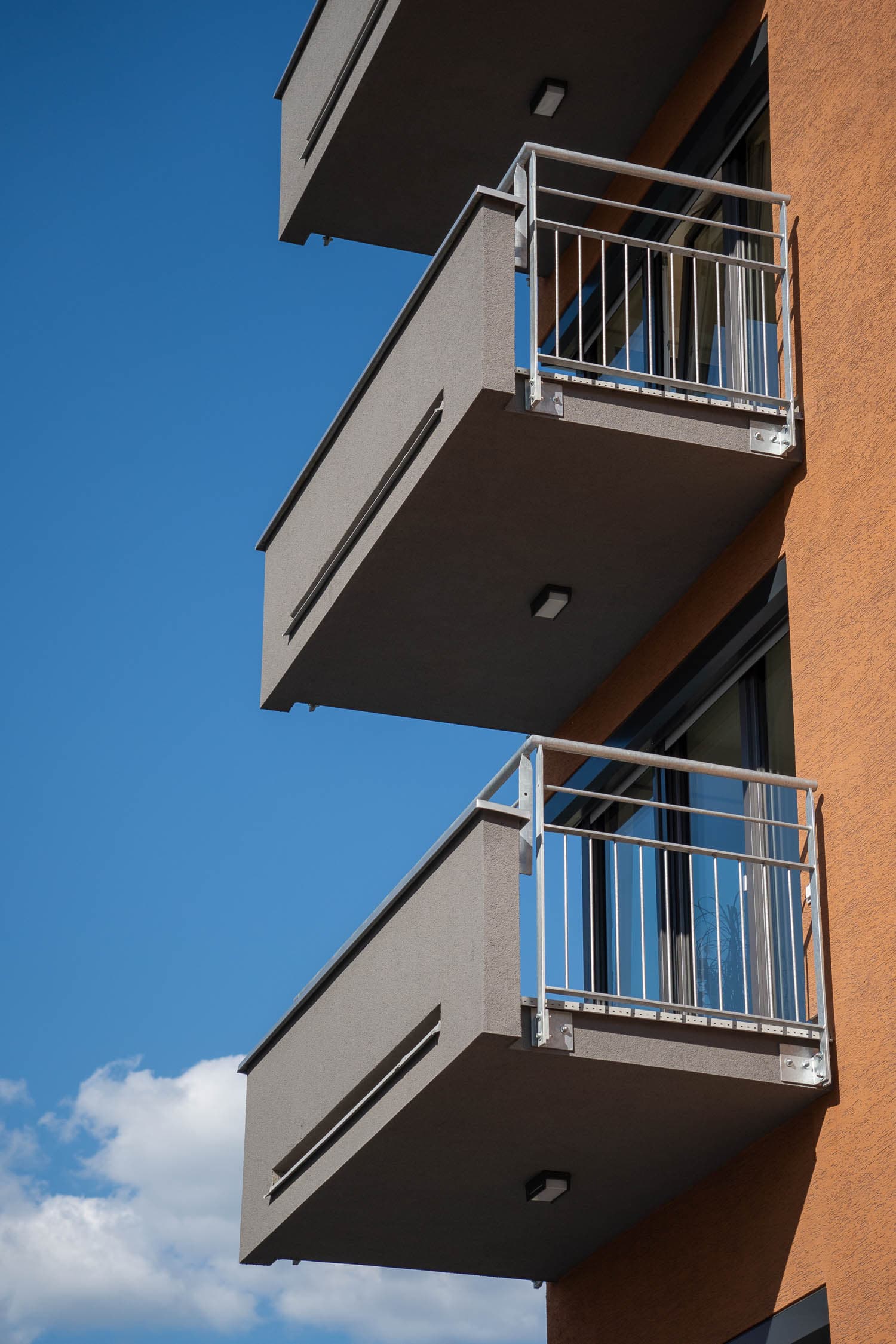 Součástí realizace byly i další zámečnické prvky, které doplňují provozní i vizuální stránku projektu. Výsledkem je řešení, které podporuje bezpečnost, funkčnost a čistý detail v celém rozsahu stavby.
