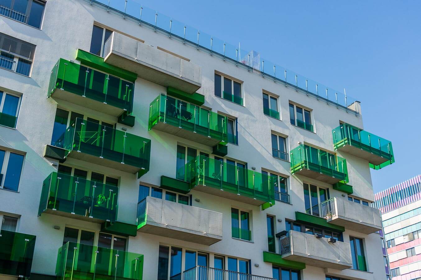 Rezidence 4 Blok vznikla na místě původního závodu Tesla v pražských Vršovicích. Na této akci jsme se podíleli kompletní dodávkou zámečnických prvků, ze kterých Vás okamžitě zaujmou barevná skleněná zábradlí, která dodávají styl a charakter celého projektu.