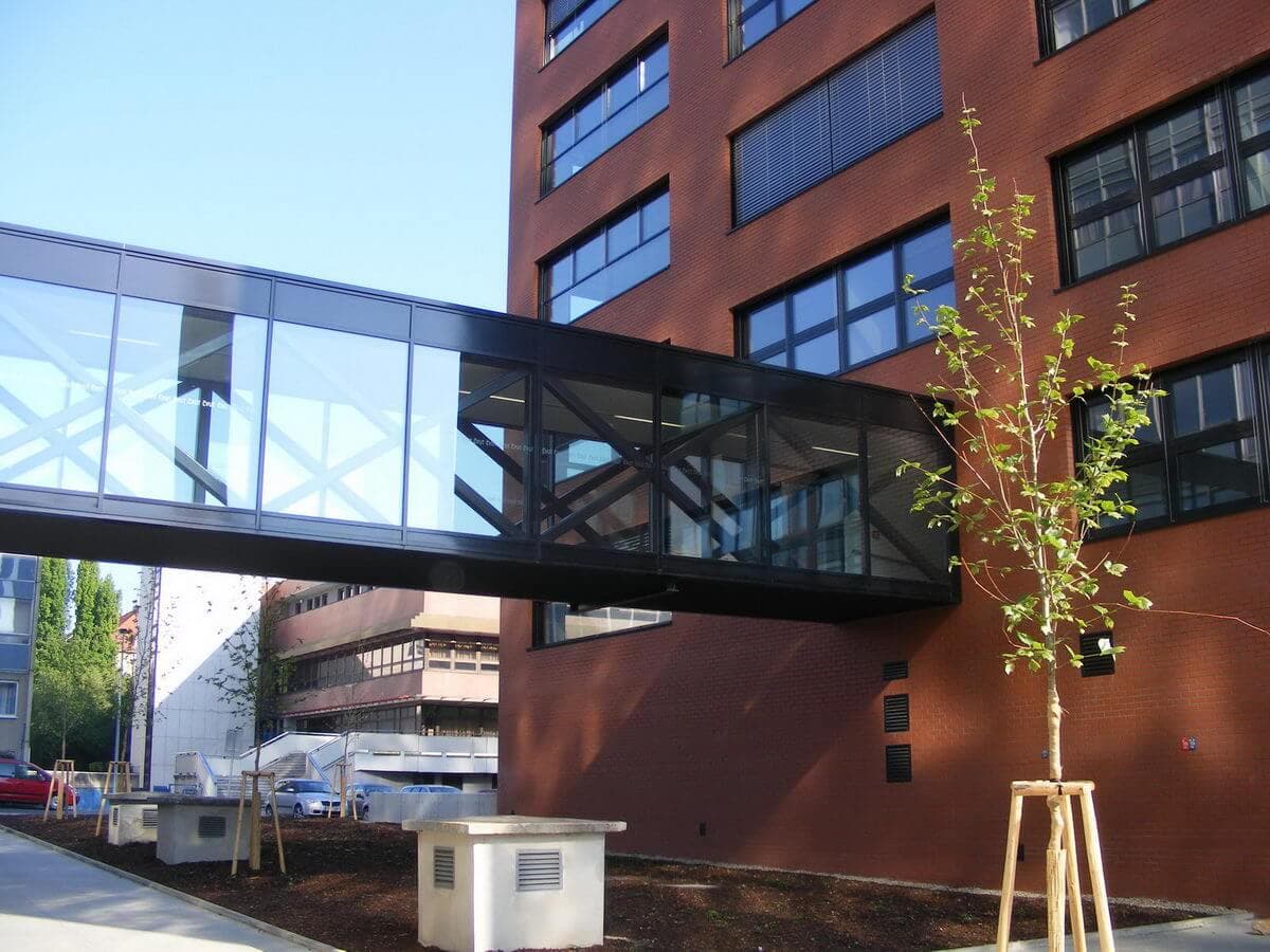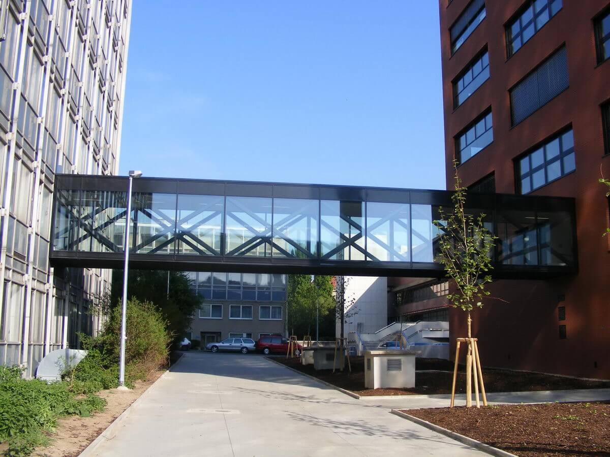 Na stavbu nové budovy Stavební fakulty Českého Vysokého Učení Techického v Praze jsme dodávali ocelové konstrukce střech a stropů a prosklený spojovací tubus propojující starou a novou budovu.