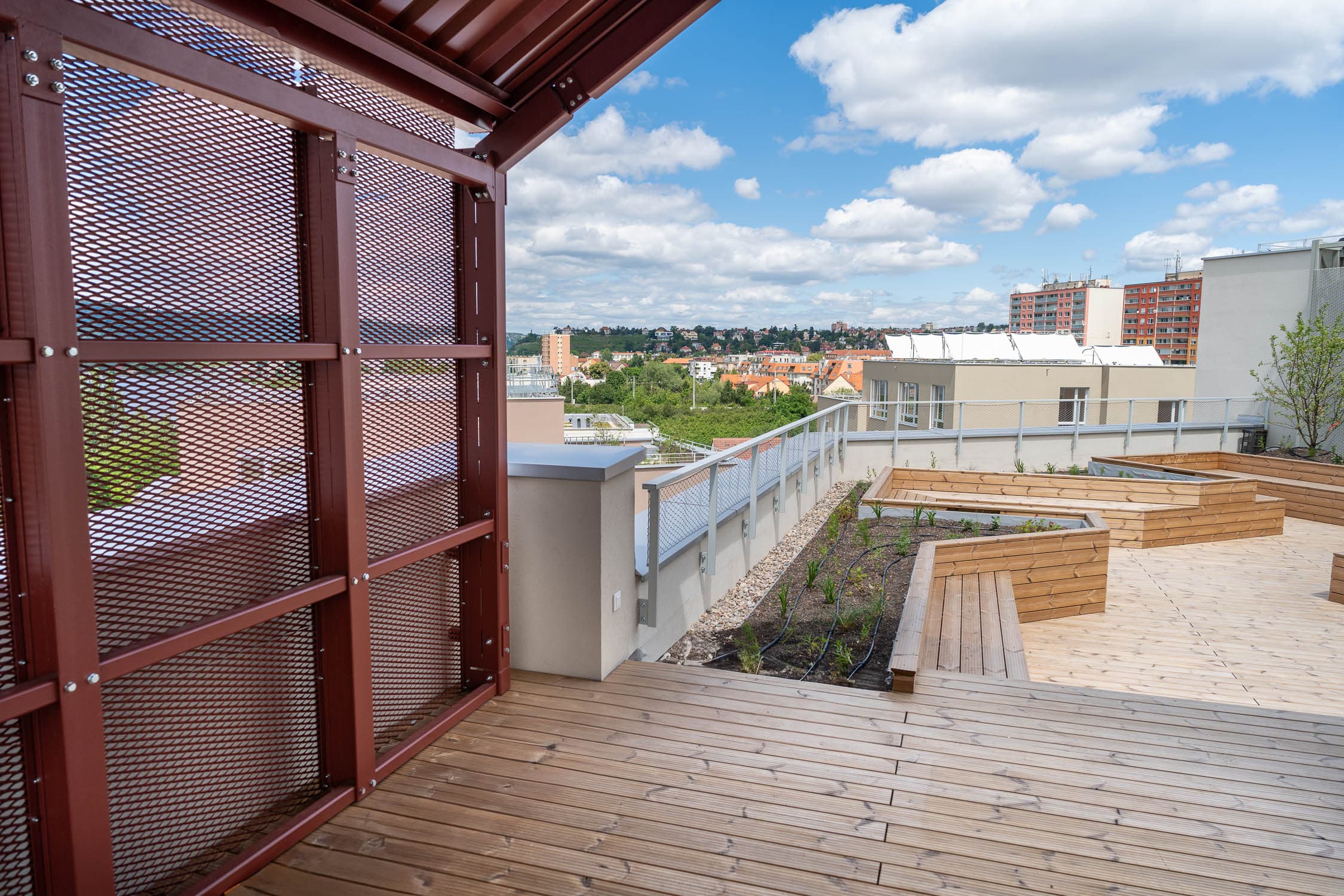 Na projektu Modřanský Cukrovar AB jsme zajišťovali kompletní dodávku zámečnických konstrukcí. Hlavní část tvořila balkonová zábradlí, zábradlí lodžií a atik teras, doplněná o další prvky včetně konstrukce pro zastřešený komunitní prostor na střeše.