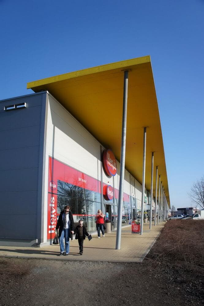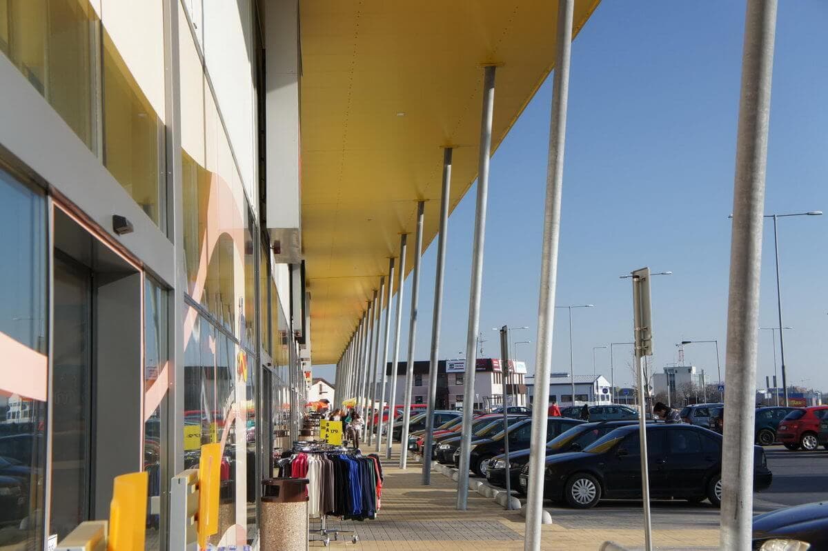 Na stavbu nového obchodního centra v Táboře jsme dodali ocelové konstrukce vstupní markýzy a přístřešků.