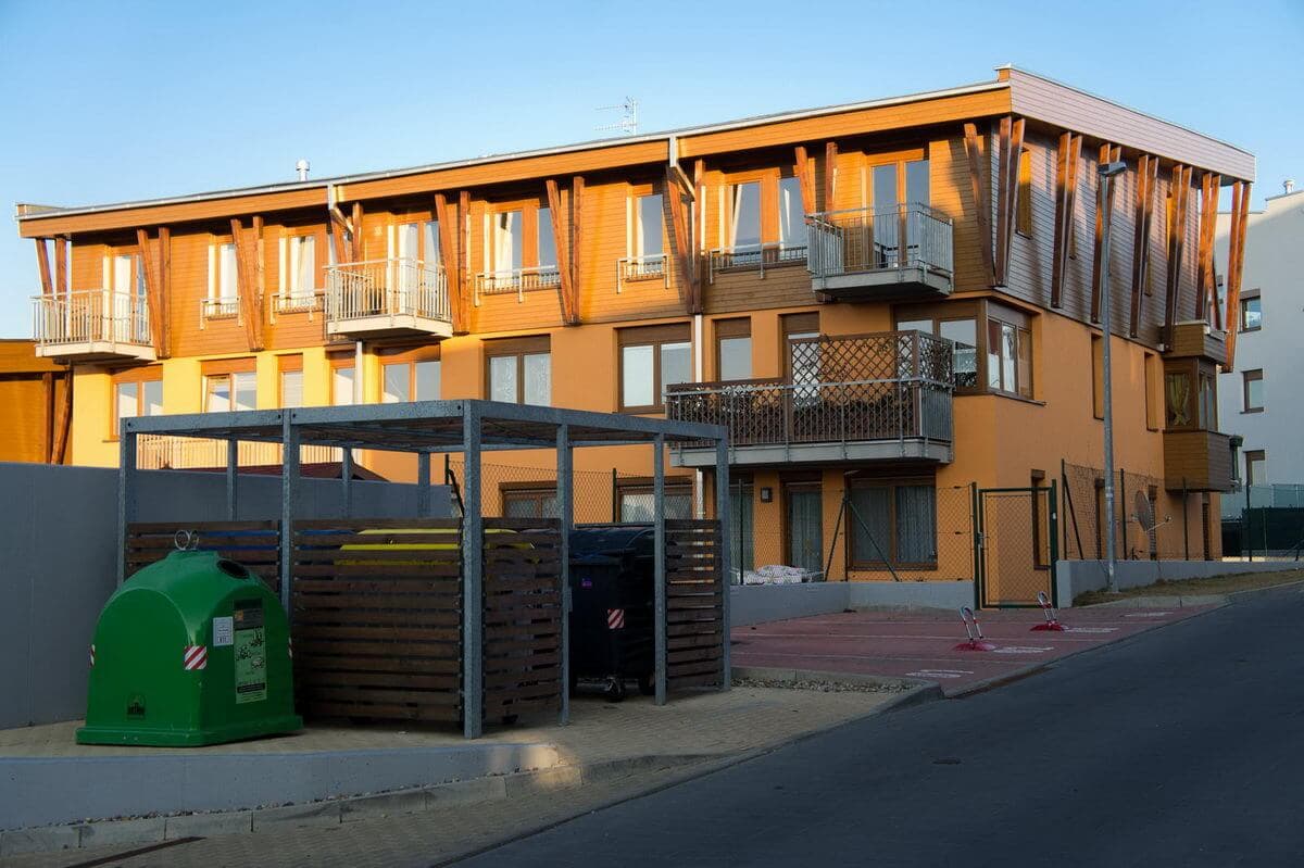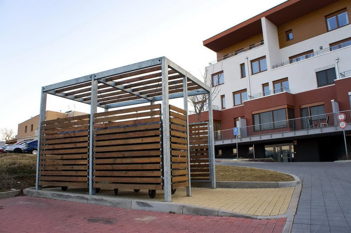 Dodali jsme zámečnické prvky jako přístřešky na konteinerová stání, venkovní zábradlí atp.