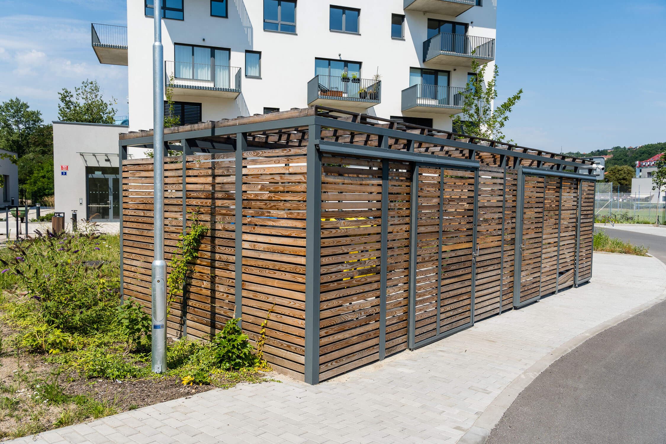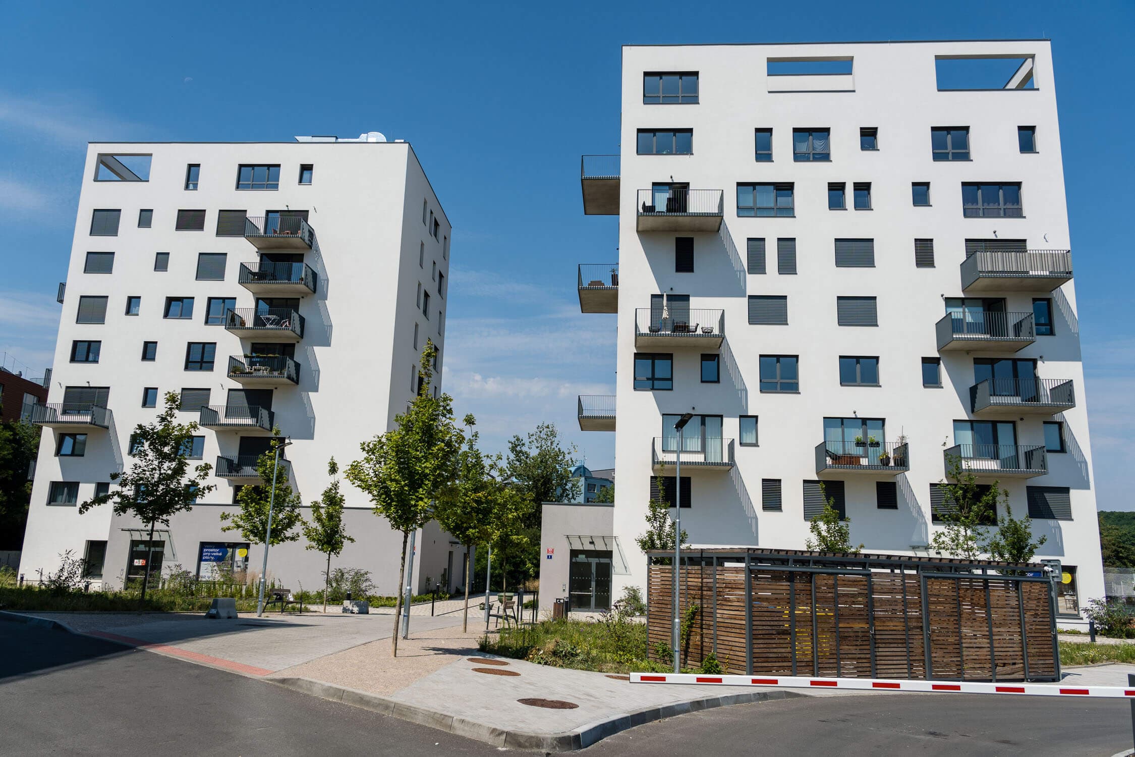 Naše firma měla čest být součástí tohoto zajímavého projektu. Zajistili jsme zábradlí balkonů v elegantním antracitovém odstínu, které kromě své funkčnosti přidává objektu moderní estetický nádech. Dále jsme se podíleli na dodávce zábradlí vnitřních schodišť a celé řady dalších zámečnických prvků, mezi něž patří přístřešky na odpady, stříšky, anténní stožáry, dělicí stěny a poklopy, které podtrhují kvalitu a promyšlenost celého projektu.