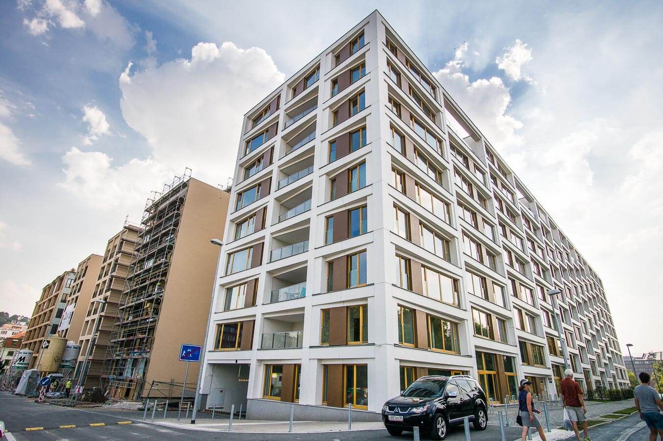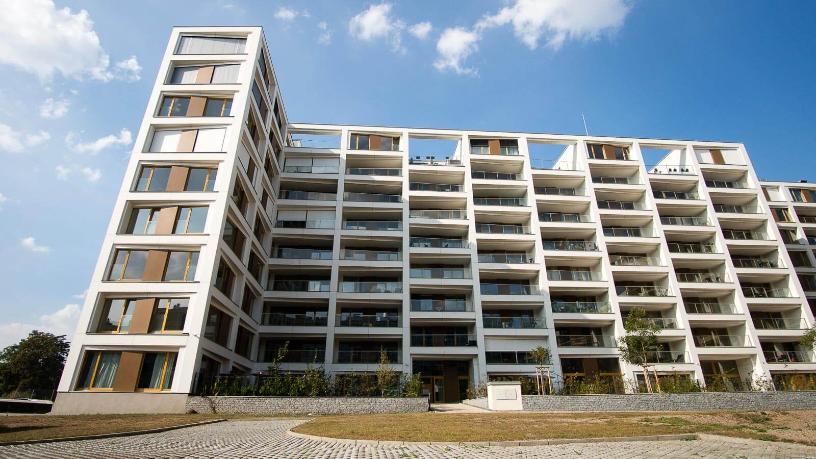 Pro výstavbu karlínské rezidence Vltava jsme dodali skleněná zábradlí lodžií a teras, zábradlí vnitřních schodišť a zámečnické konstrukce výtahů.
