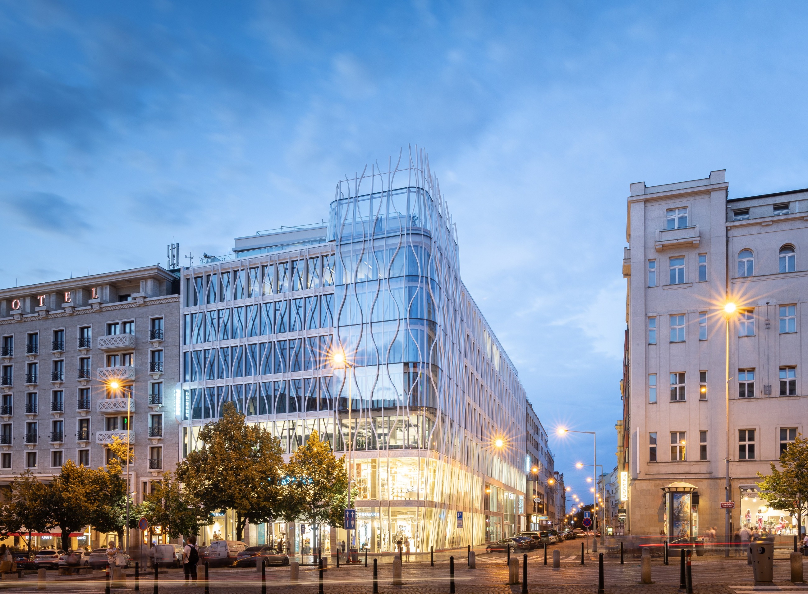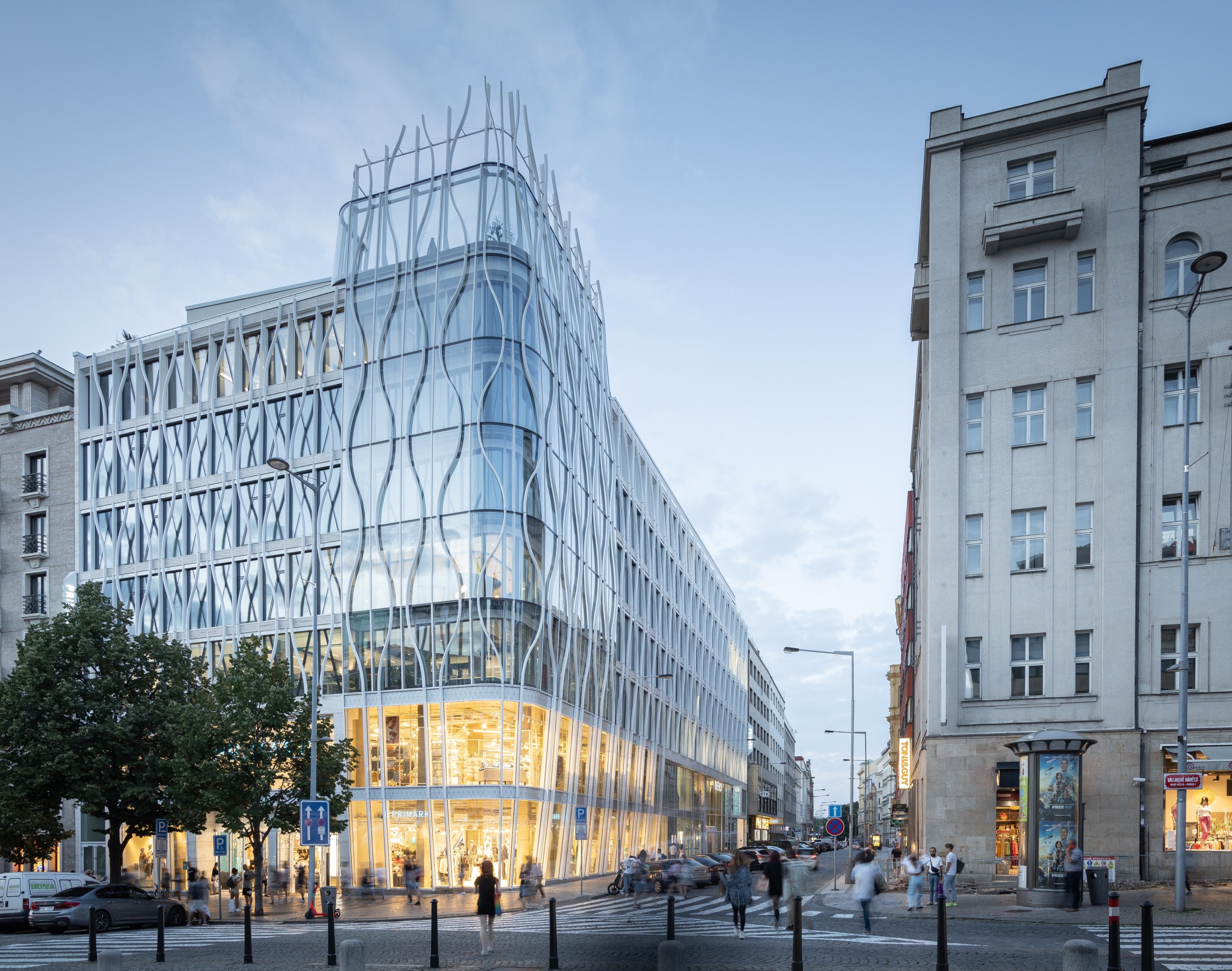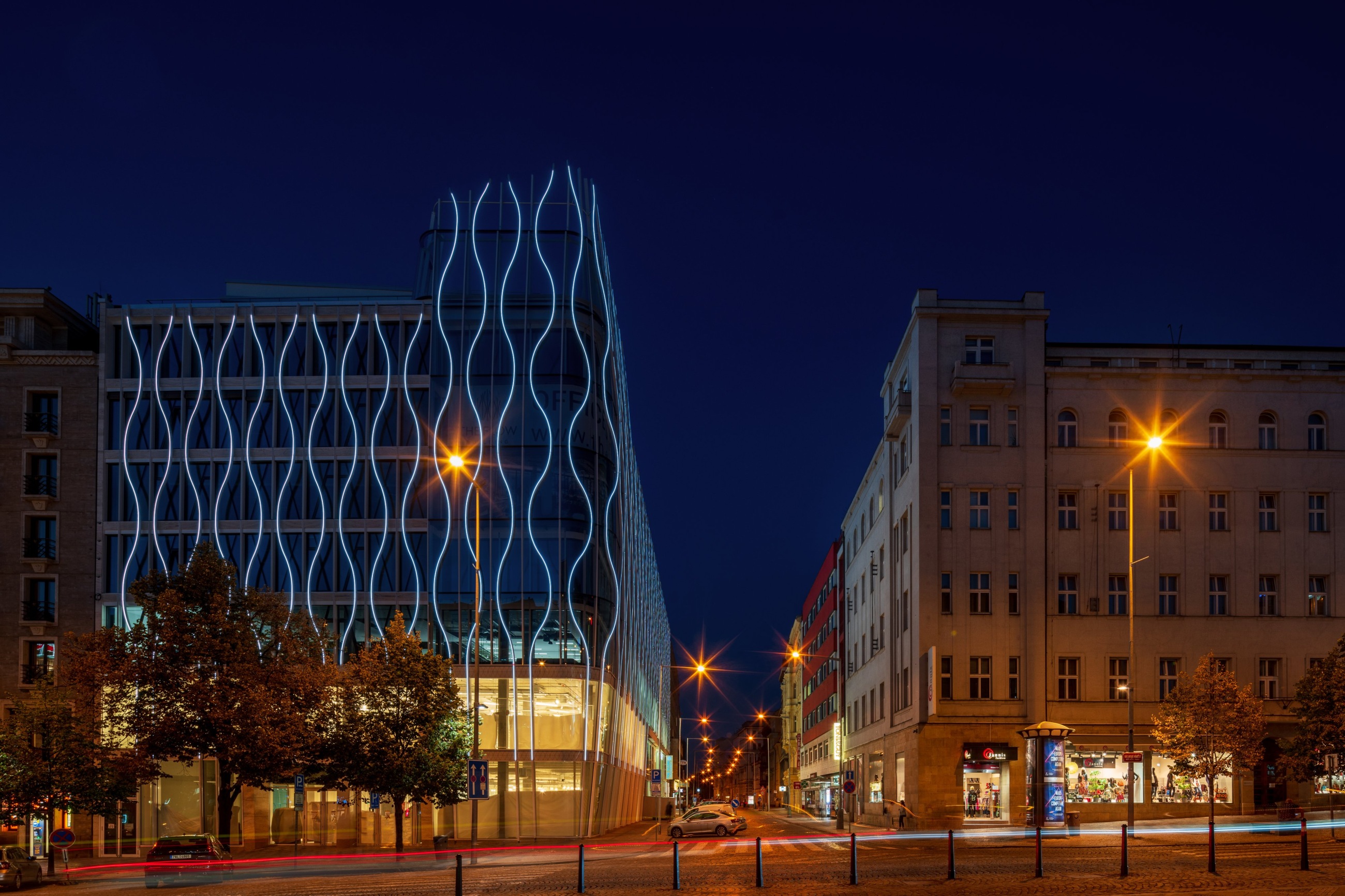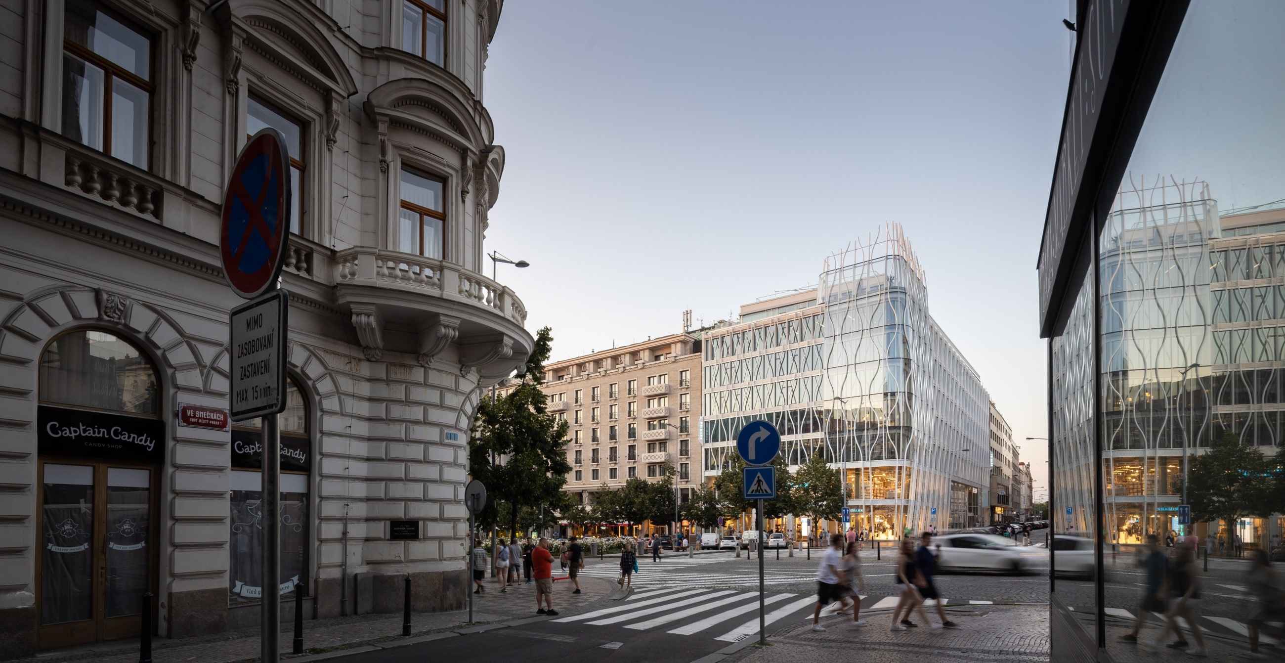 Dodávali jsme ocelovou konstrukci pro tzv. korunu domu, která tvoří nosný základ architektonicky výrazné lamelové fasády ve vyšších patrech objektu. Fasádní systém navržený společností Sipral pracuje s trojrozměrným modulovým řešením a plynulým zakřivením vystupujícím nad linii chodníku, což kladlo mimořádné nároky na přesnost výroby, toleranční řízení a montáž. Konstrukce musela umožnit přesné osazení jednotlivých prvků fasády, respektovat statické a dilatační požadavky a zároveň zůstat vizuálně potlačená ve prospěch celkového architektonického výrazu. Klíčová byla úzká technická koordinace s autorem fasády po celou dobu realizace.