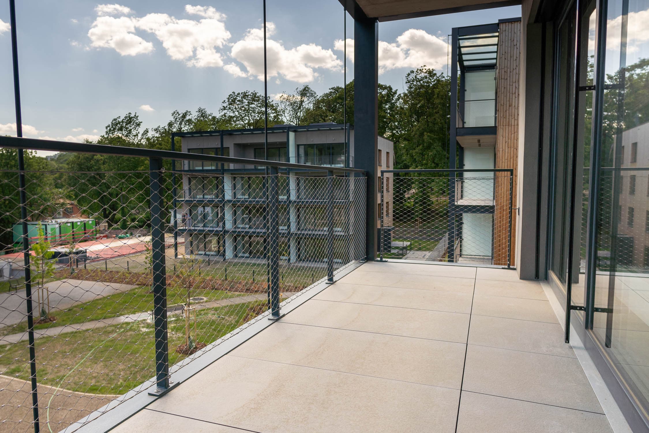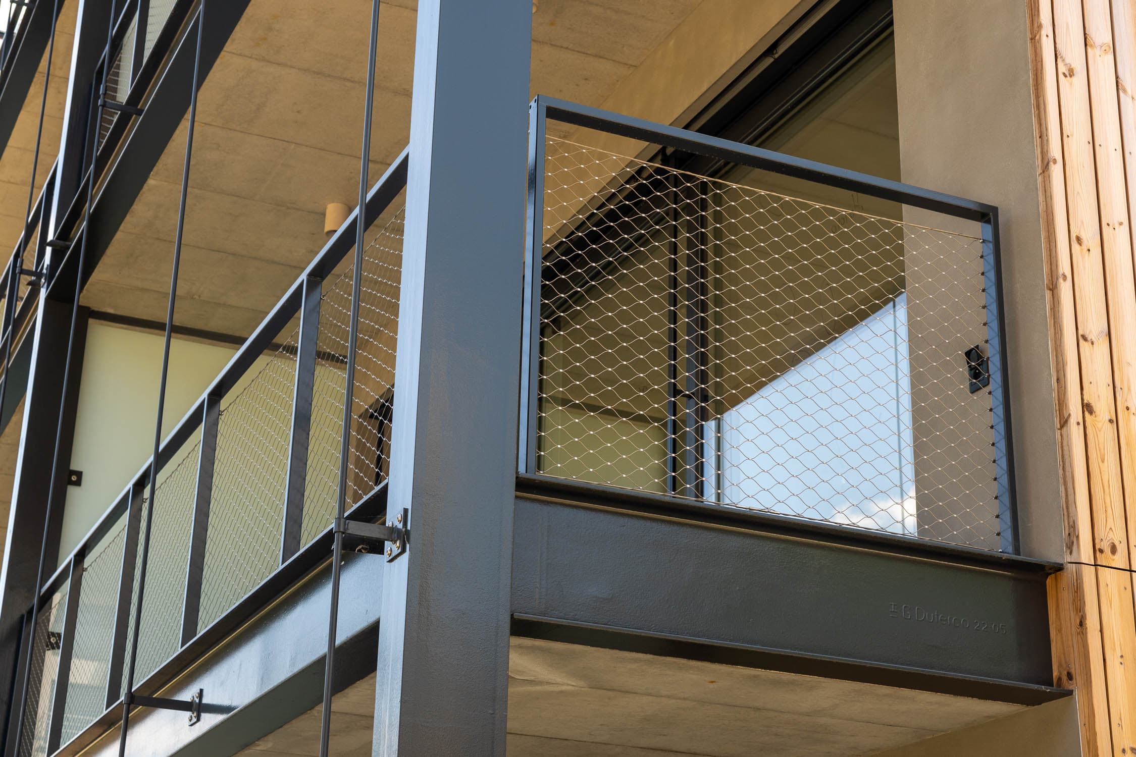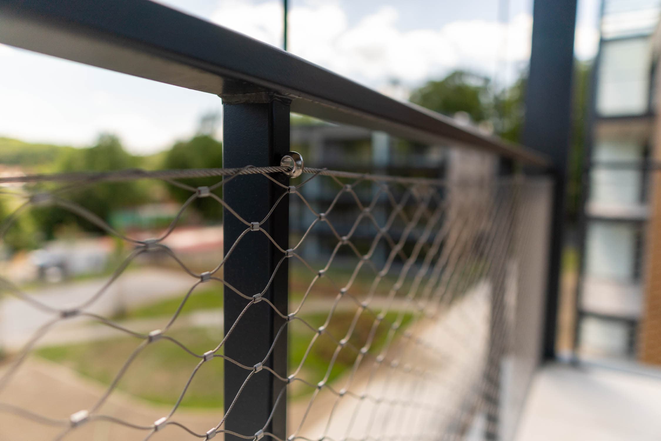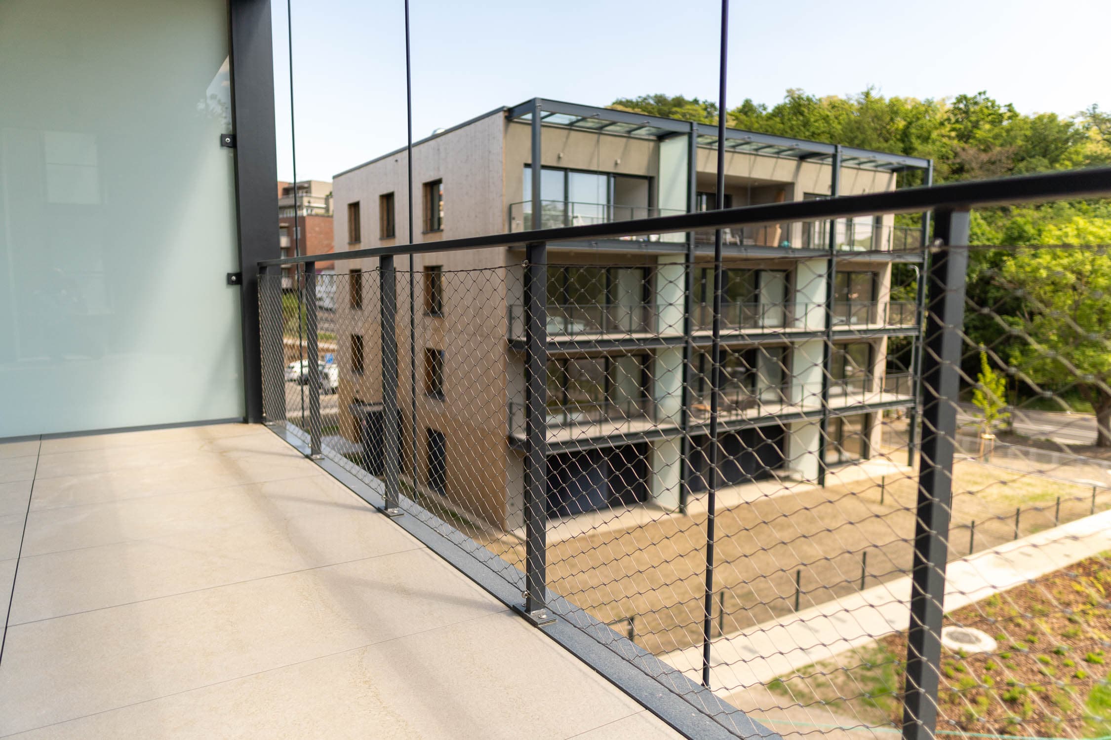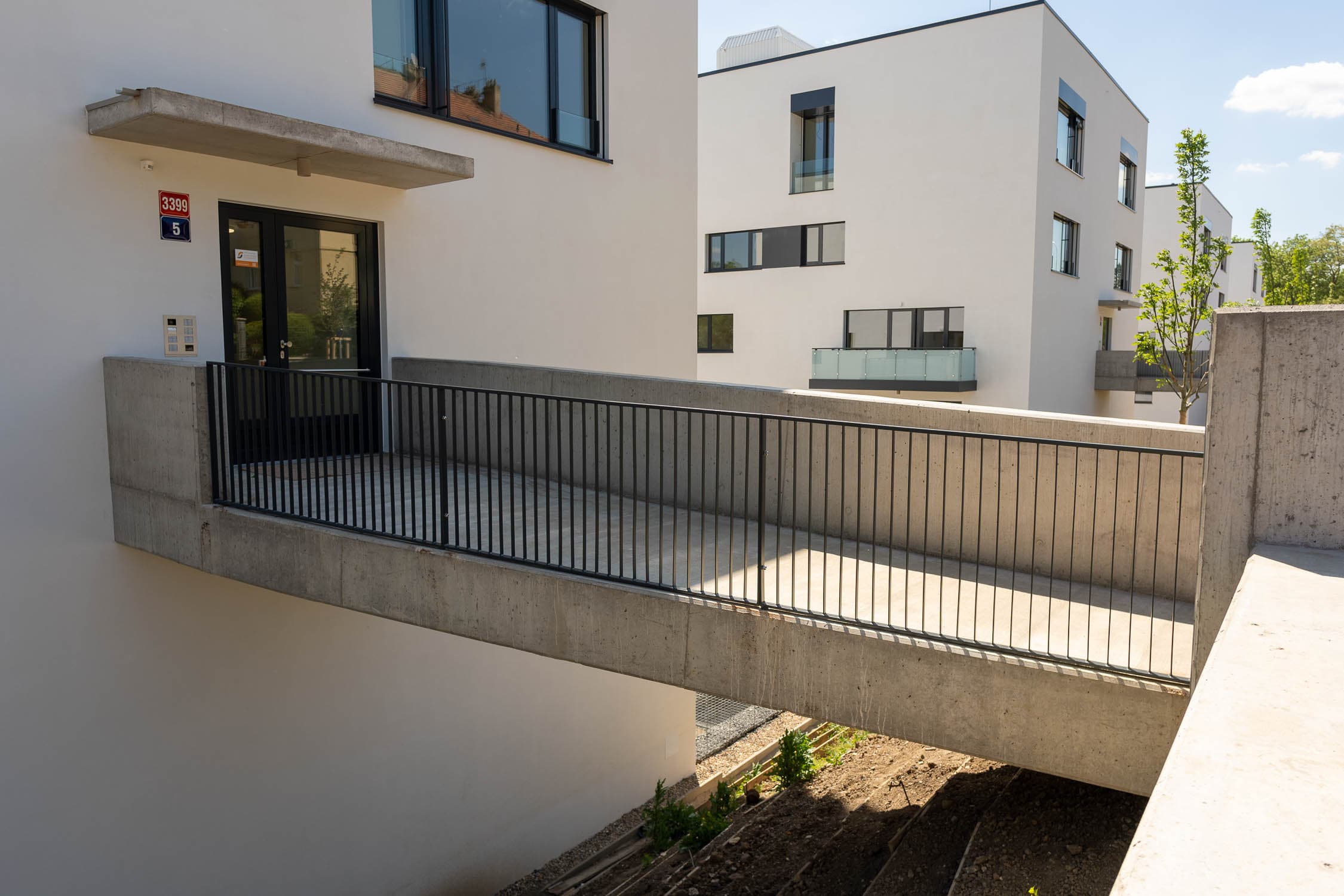 Na projekt Vilapark Klamovka, kde jsme dodávali celou řadu zámečnických prvků a také prostorné balkonové terasy. Tyto terasy jsou tvořeny ocelovou konstrukcí lakovanou v antracitovém odstínu. Zvláštní důraz jsme kladli na detaily, aby sloupy, které se skládají z válcovaných profilů, byly jednolité a bez viditelných svarů. Výsledkem je elegantní a čistý vzhled. Jako výplň zábradlí byla vybrána nerezová síť, která je nejen estetická, ale i praktická. Balkony jsou navíc vybaveny trelážovým systémem, který je připraven pro popínavé rostliny, což dodá terasám v průběhu let přírodnější vzhled.