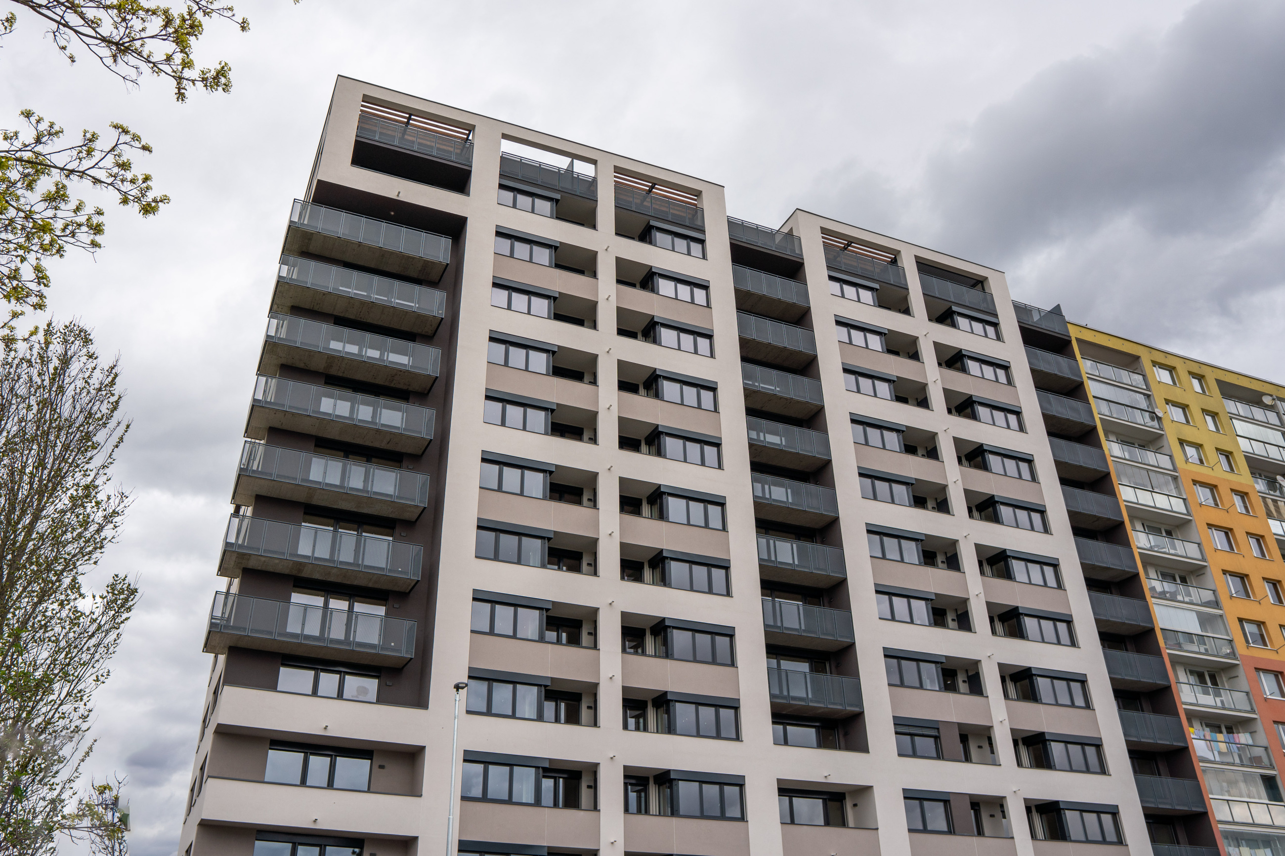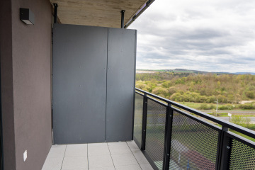 Součástí dodávky byly také dělící stěny na lodžiích a terasách, které zvyšují míru soukromí jednotlivých bytů bez narušení celkového výrazu domu. Technické řešení pracuje s opakovatelností prvků a přesným detailem, což bylo důležité vzhledem k rozsahu projektu.
