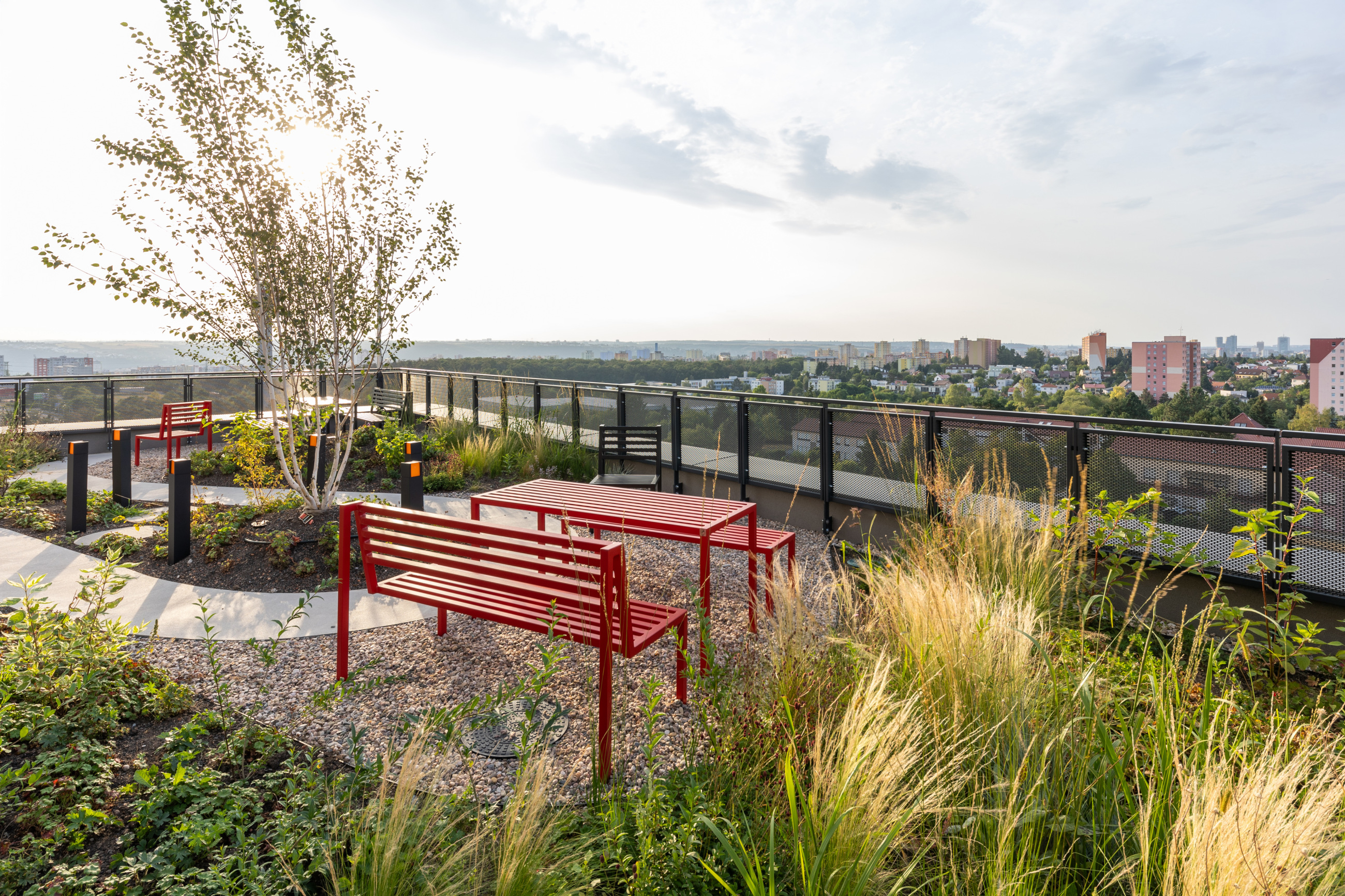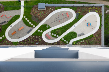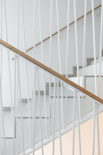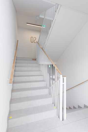 V rámci projektu Vital Kamýk jsme dodávali kompletní řešení vnitřních a venkovních zábradlí navržené v úzké návaznosti na architektonický koncept stavby. V interiéru jsou použita lehká ocelová zábradlí v bílé barvě, která pracují s jemným rytmem svislých prvků a podporují světlo a přehlednost společných prostor.